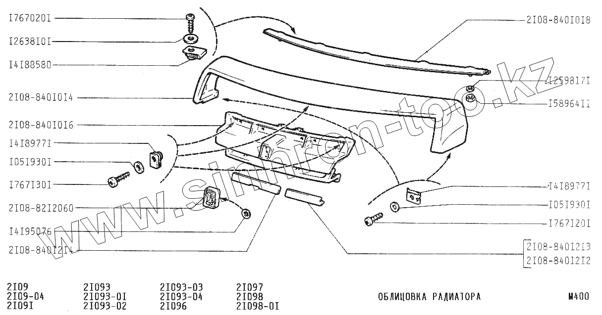 Каталог запасных частей к технике: ВАЗ-21099. Облицовка радиатора