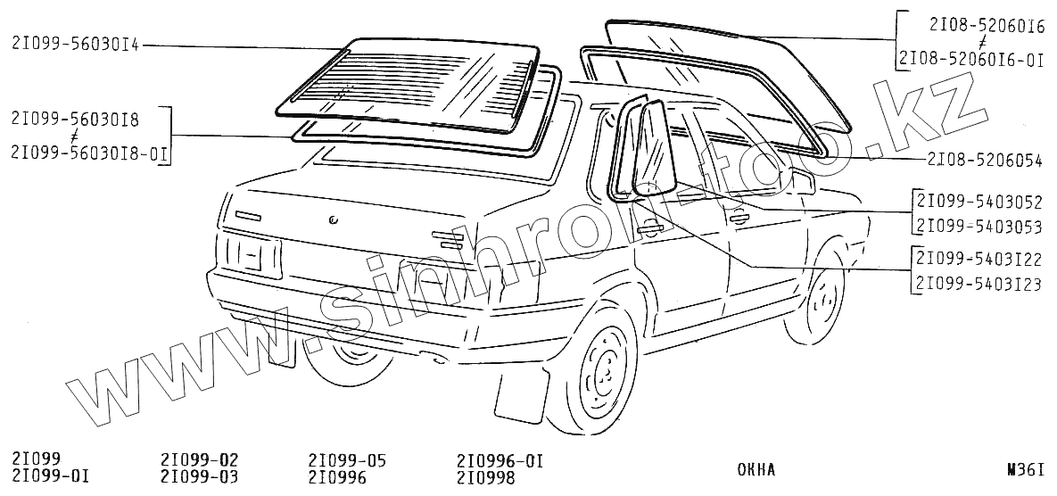 Каталог запасных частей к технике: ВАЗ-21099. Окна