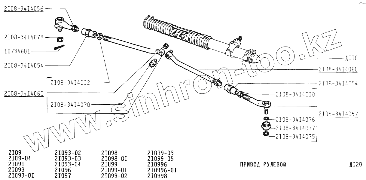 Каталог запасных частей к технике: ВАЗ-21099. Привод рулевой