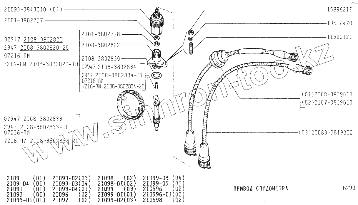 Каталог запасных частей к технике: ВАЗ-21099. Привод спидометра