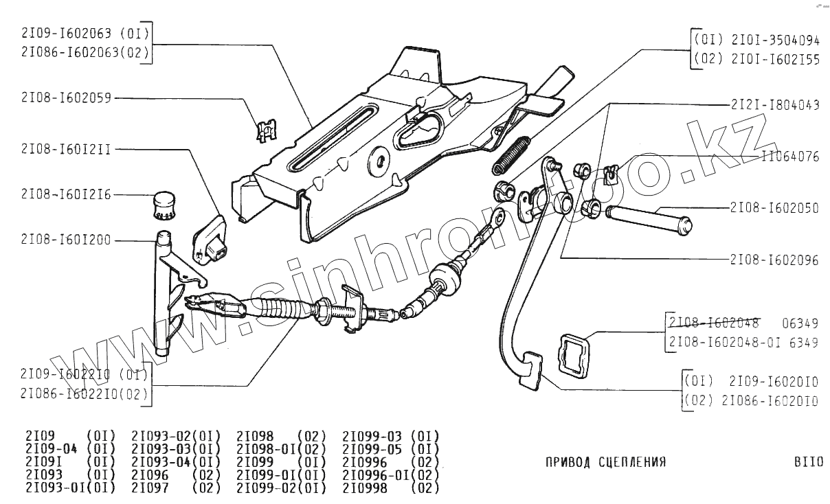 Каталог запасных частей к технике: ВАЗ-21099. Привод сцепления