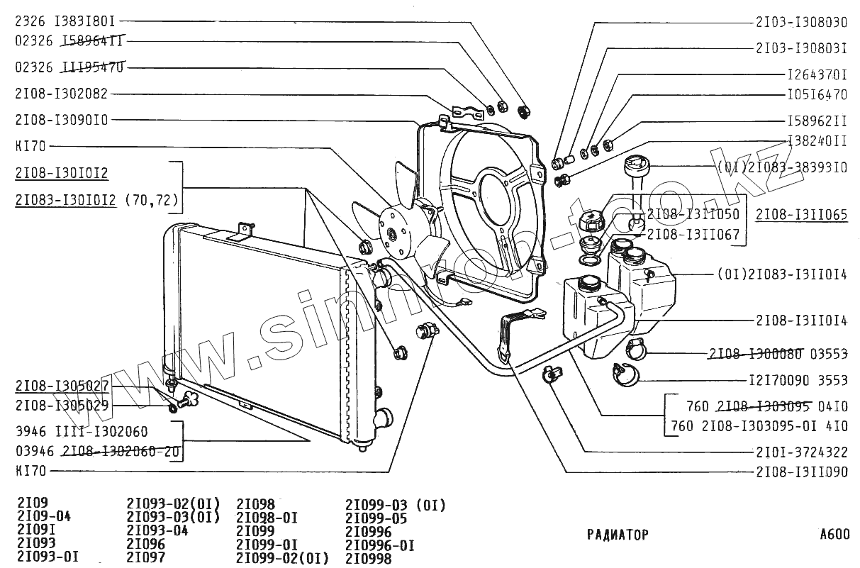 Каталог запасных частей к технике: ВАЗ-21099. Радиатор