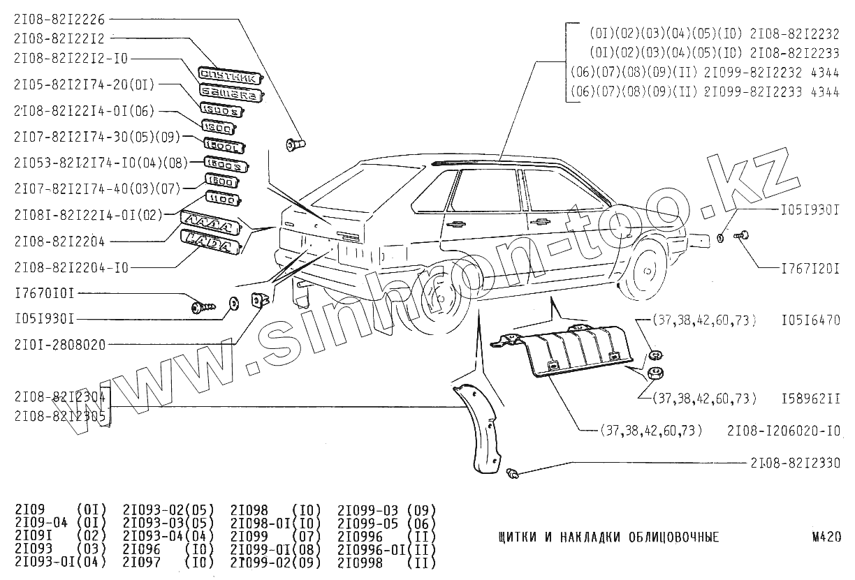 Каталог запасных частей к технике: ВАЗ-21099. Щитки и накладки облицовочные
