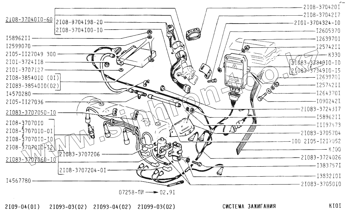 Каталог запасных частей к технике: ВАЗ-21099. Система зажигания