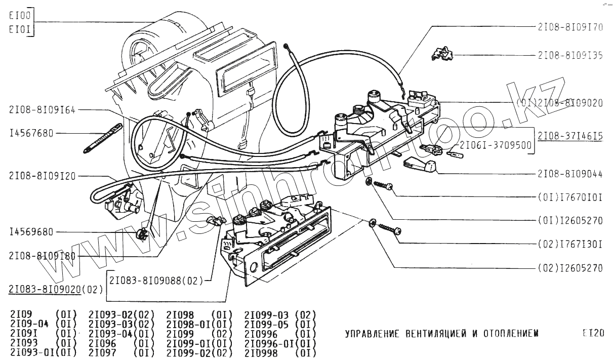 Каталог запасных частей к технике: ВАЗ-21099. Управление вентиляцией и отоплением