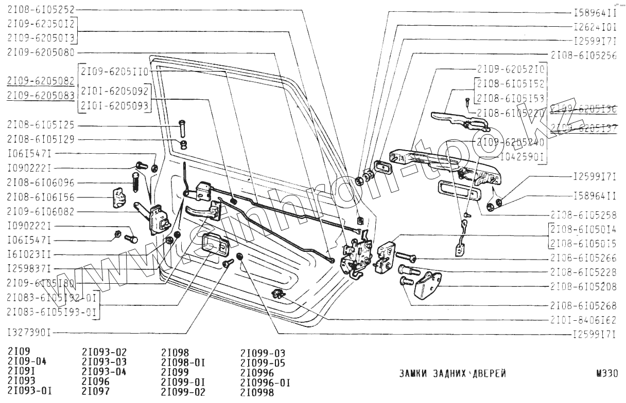 Каталог запасных частей к технике: ВАЗ-21099. Замки задних дверей