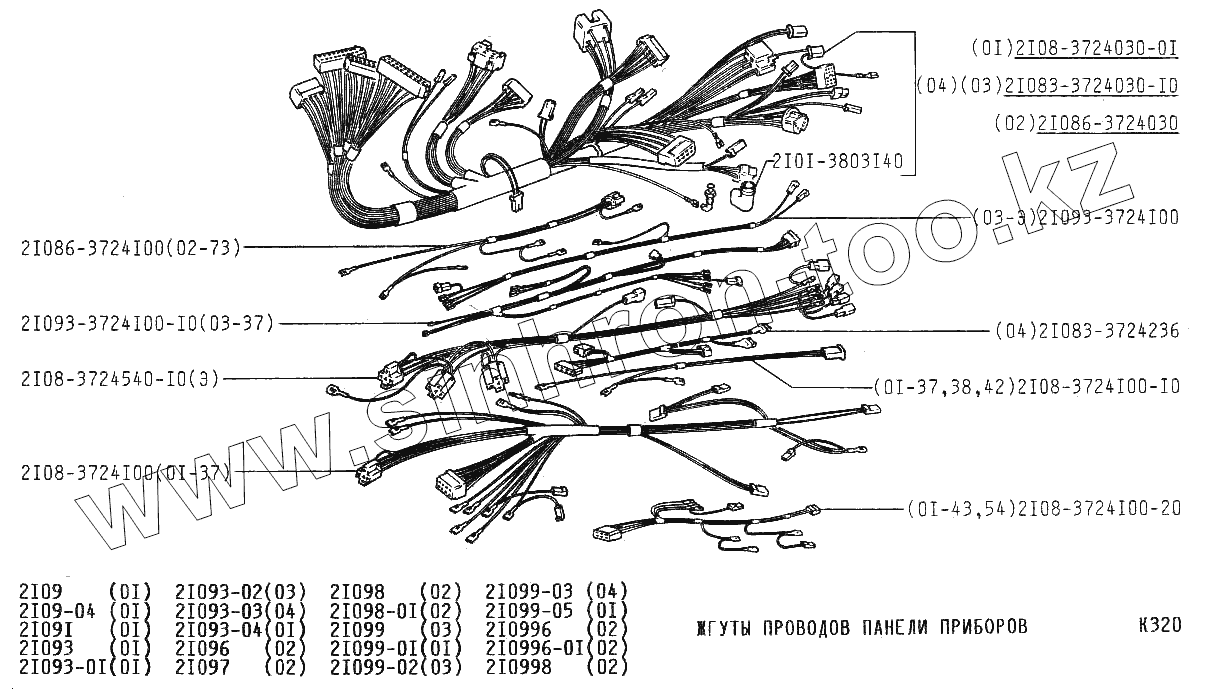 Каталог запасных частей к технике: ВАЗ-21099. Жгуты проводов панели приборов