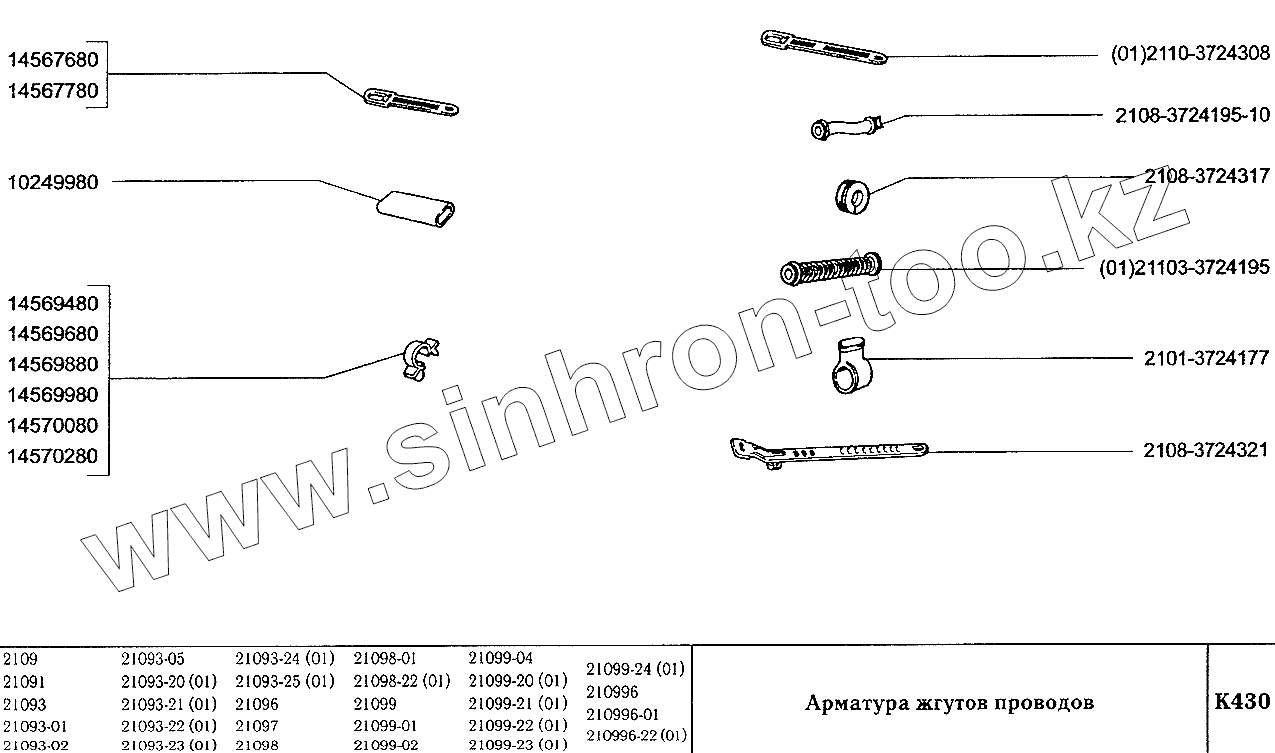 Каталог запасных частей к технике: ВАЗ-2109. Арматура жгутов проводов