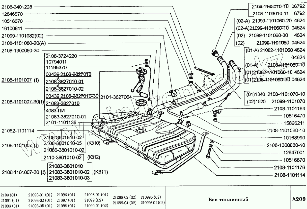 Каталог запасных частей к технике: ВАЗ-2109. Бак топливный