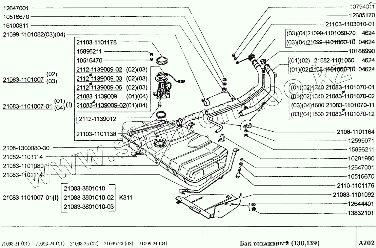 Каталог запасных частей к технике: ВАЗ-2109. Бак топливный (130, 139)
