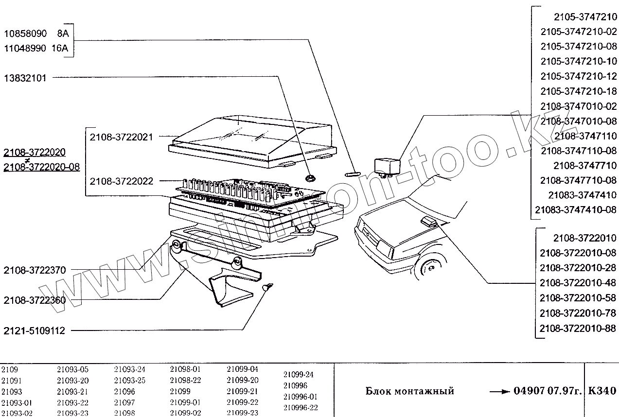 Каталог запасных частей к технике: ВАЗ-2109. Блок монтажный