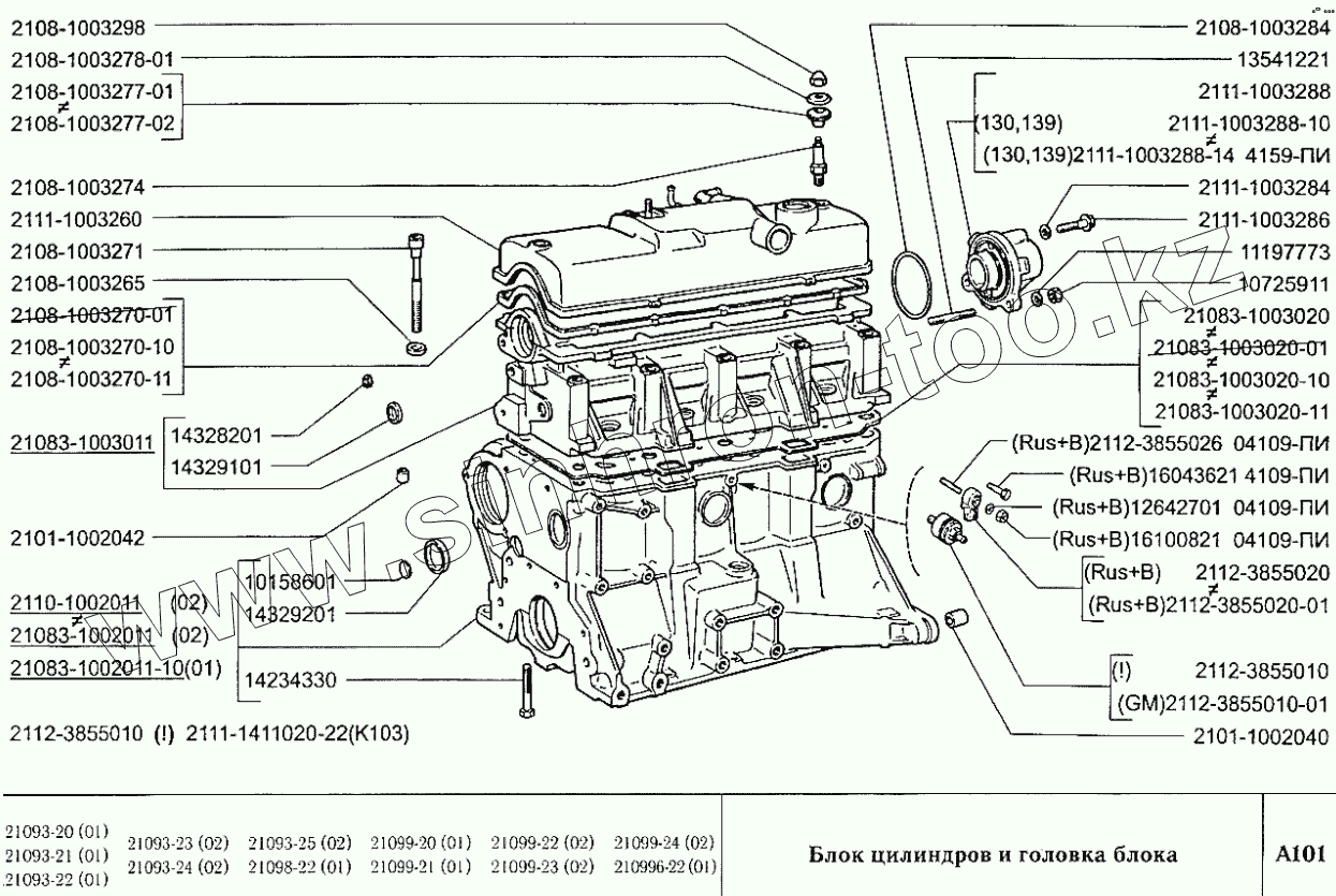 Каталог запасных частей к технике: ВАЗ-2109. Блок цилиндров и головка блока