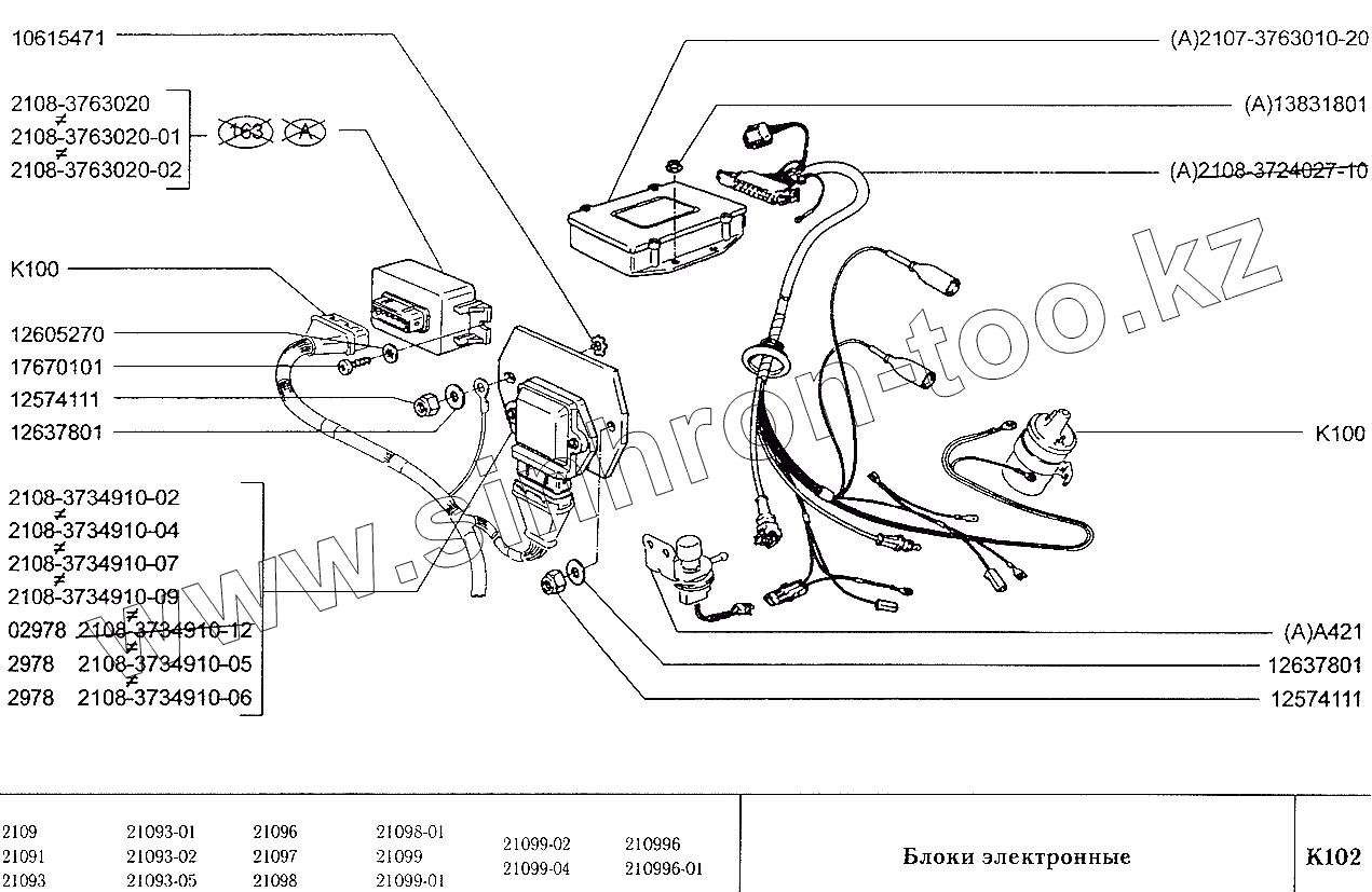 Каталог запасных частей к технике: ВАЗ-2109. Блоки электронные