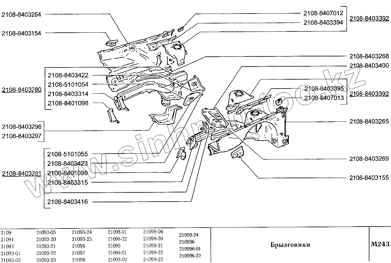 Каталог запасных частей к технике: ВАЗ-2109. Брызговики