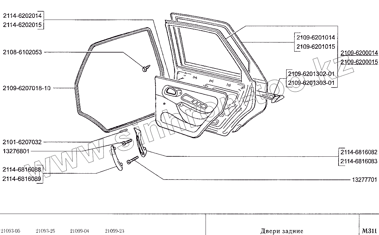 Каталог запасных частей к технике: ВАЗ-2109. Двери задние