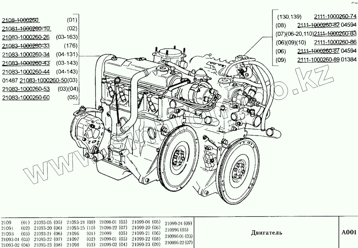 Каталог запасных частей к технике: ВАЗ-2109. Двигатель