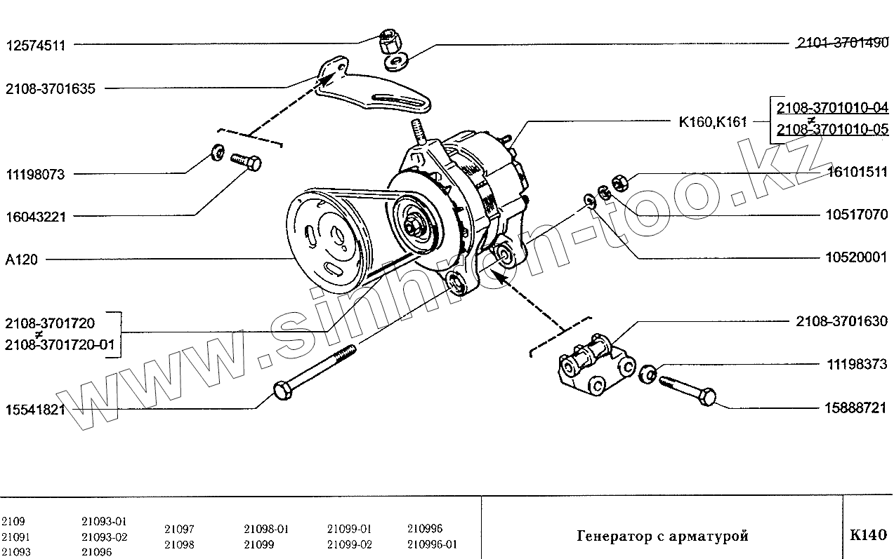Каталог запасных частей к технике: ВАЗ-2109. Генератор с арматурой