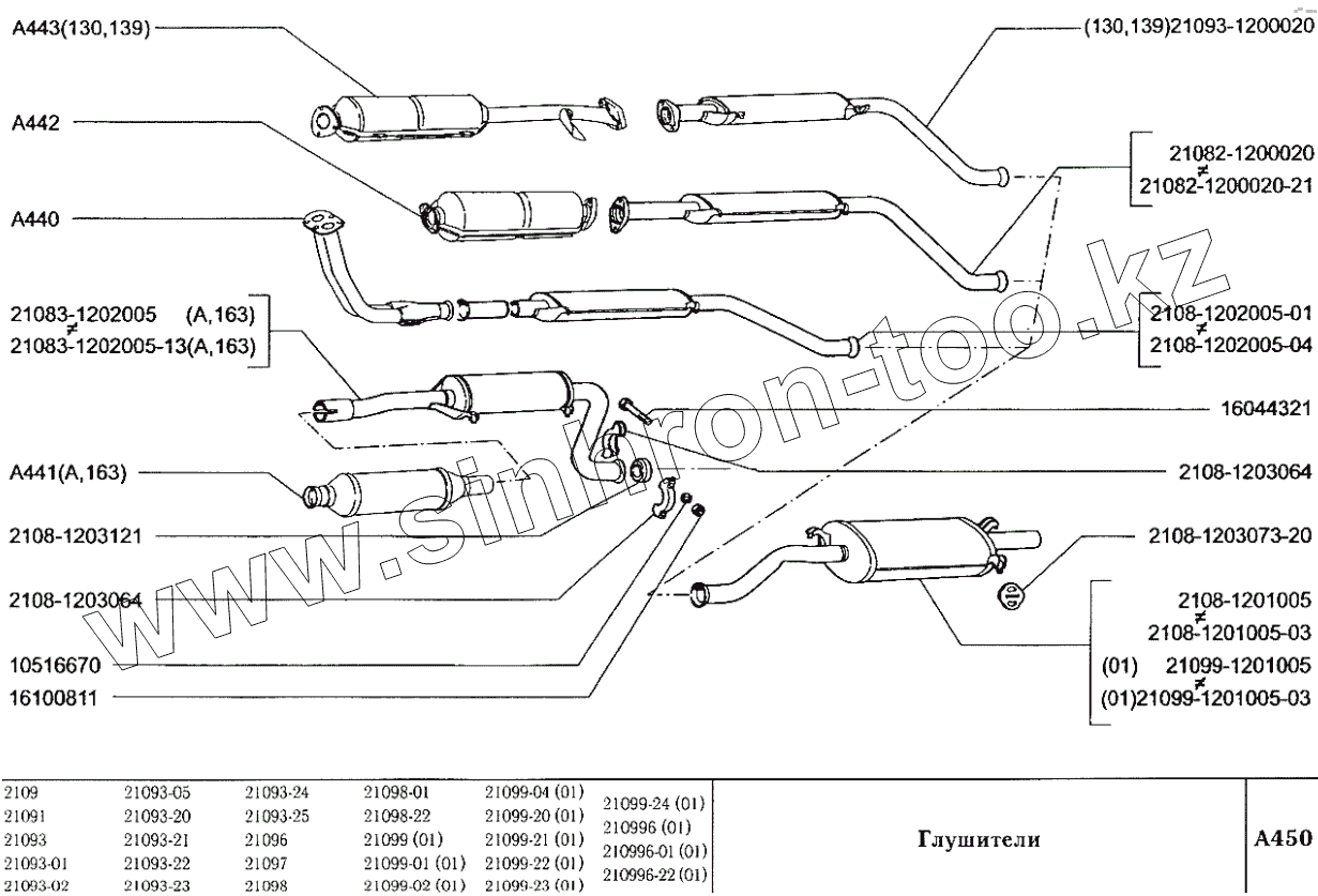Каталог запасных частей к технике: ВАЗ-2109. Глушители