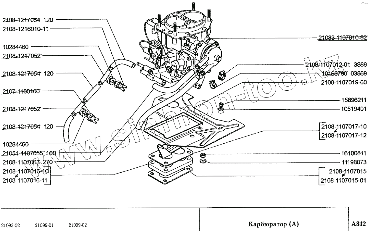 Каталог запасных частей к технике: ВАЗ-2109. Карбюратор (А)