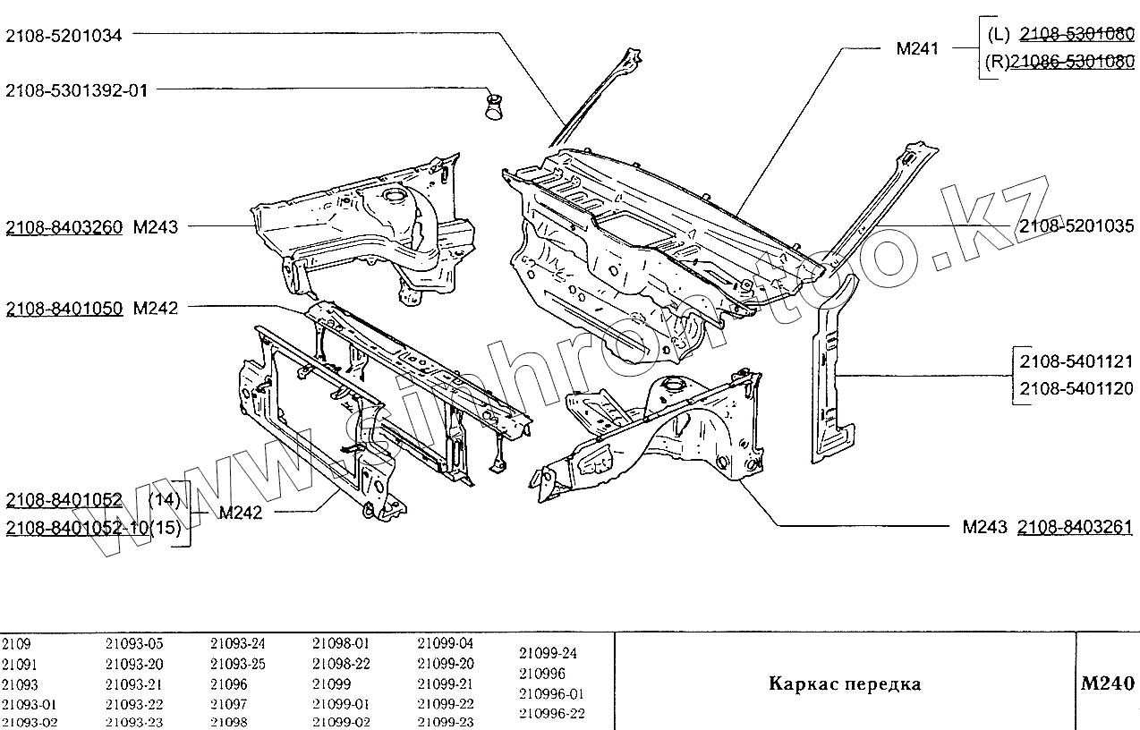 Каталог запасных частей к технике: ВАЗ-2109. Каркас передка