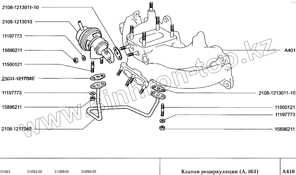 Каталог запасных частей к технике: ВАЗ-2109. Клапан рециркуляции (А, 163)