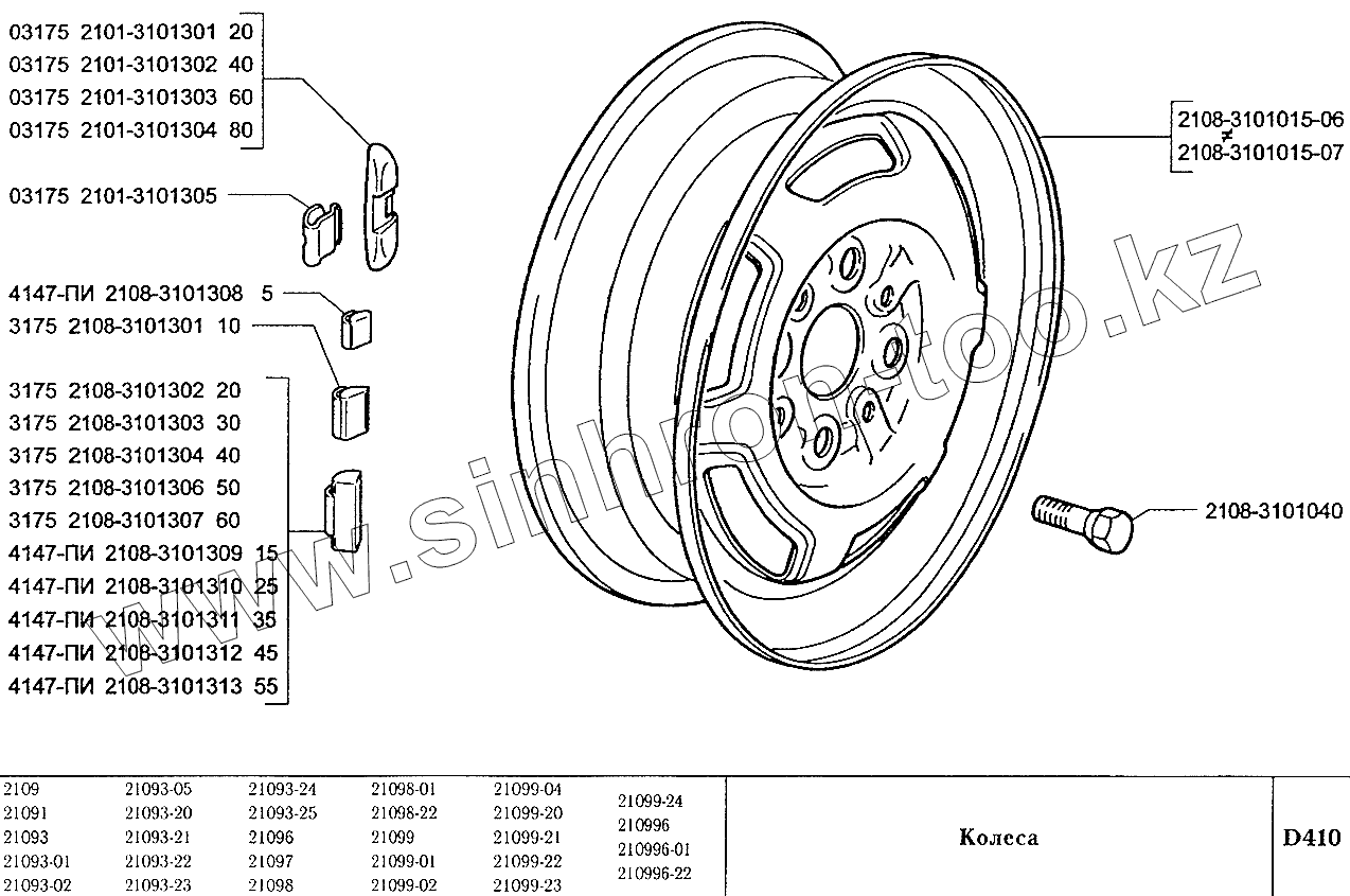 Каталог запасных частей к технике: ВАЗ-2109. Колеса