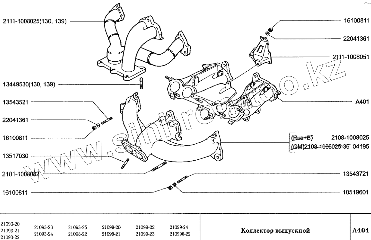 Каталог запасных частей к технике: ВАЗ-2109. Коллектор выпускной