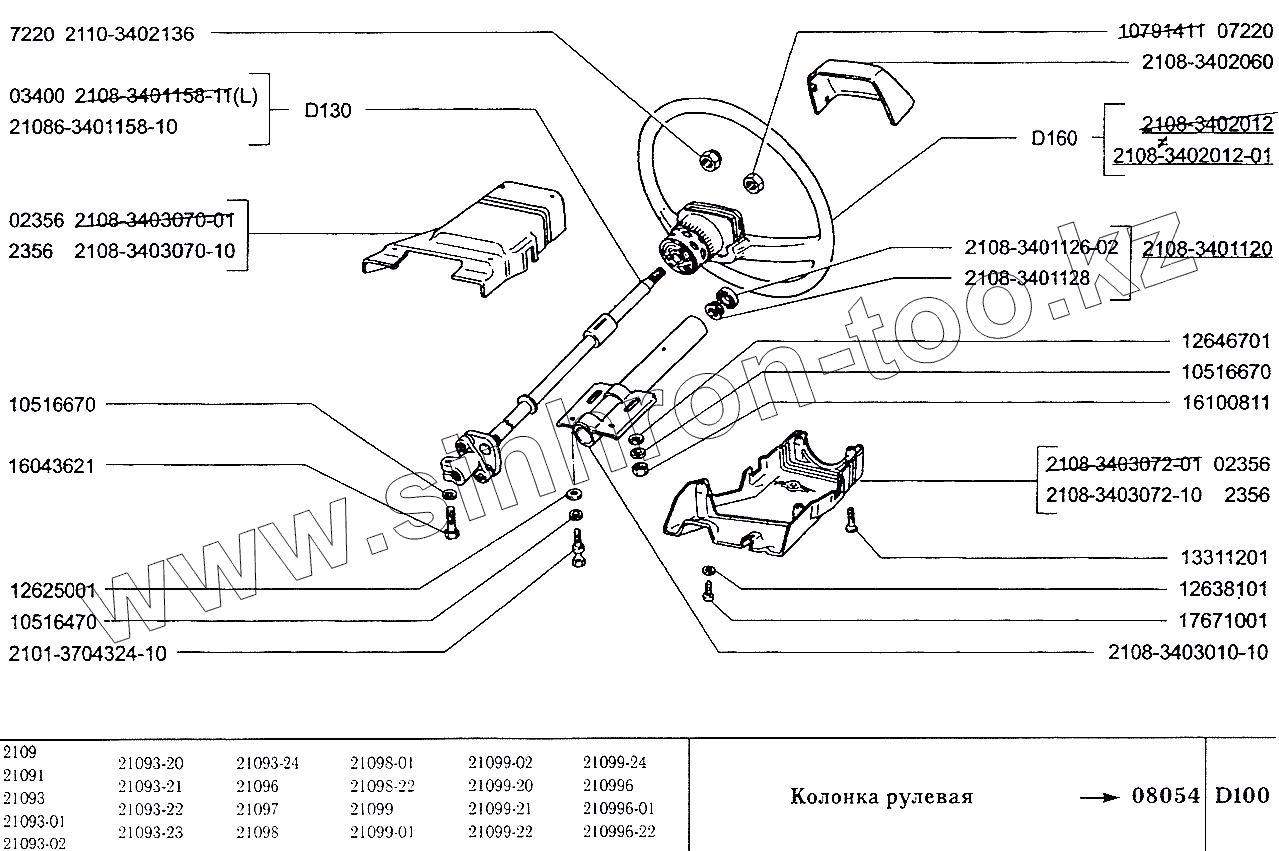 Каталог запасных частей к технике: ВАЗ-2109. Колонка рулевая