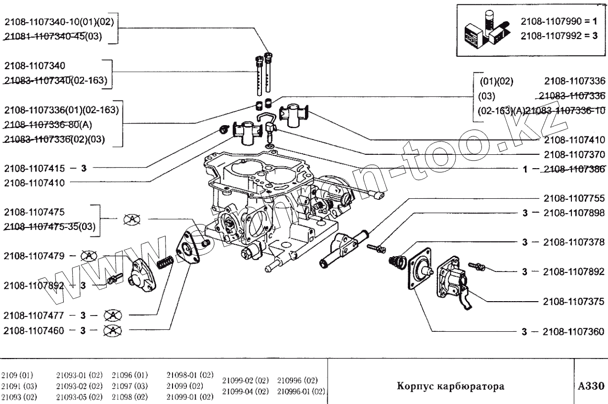 Каталог запасных частей к технике: ВАЗ-2109. Корпус карбюратора
