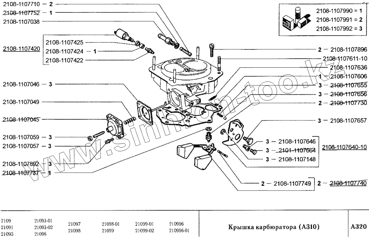 Каталог запасных частей к технике: ВАЗ-2109. Крышка карбюратора (A310)