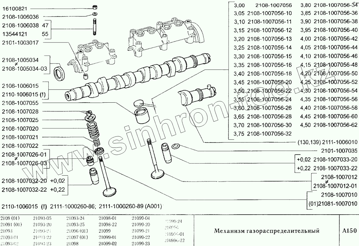 Каталог запасных частей к технике: ВАЗ-2109. Механизм газораспределительный