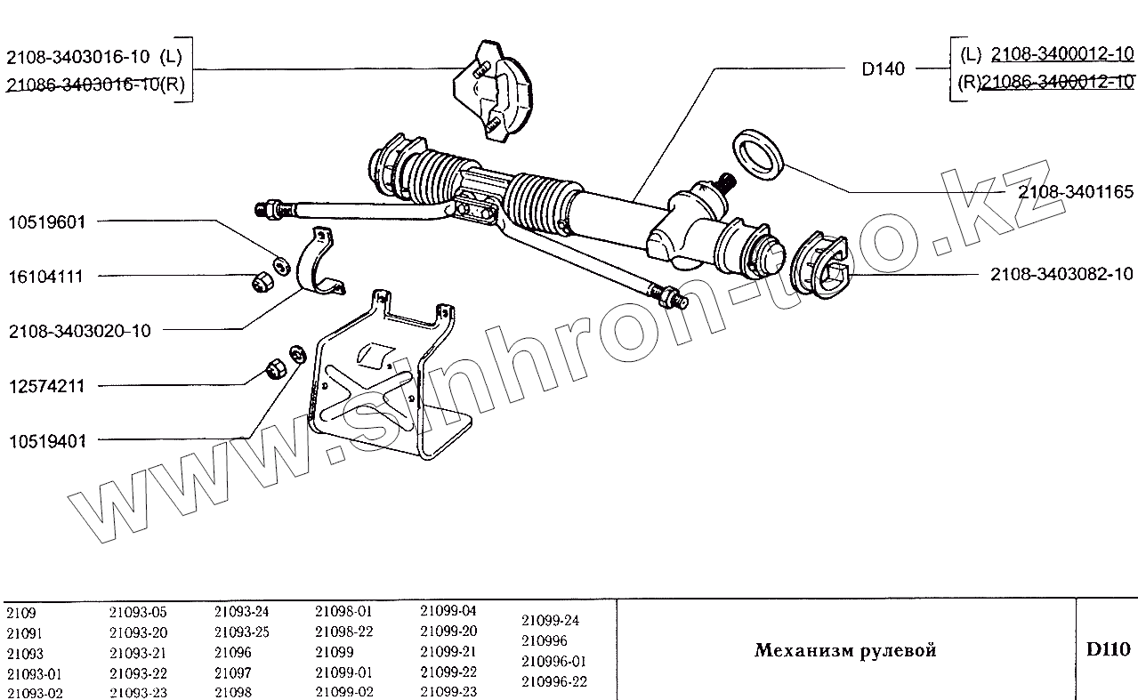Каталог запасных частей к технике: ВАЗ-2109. Механизм рулевой