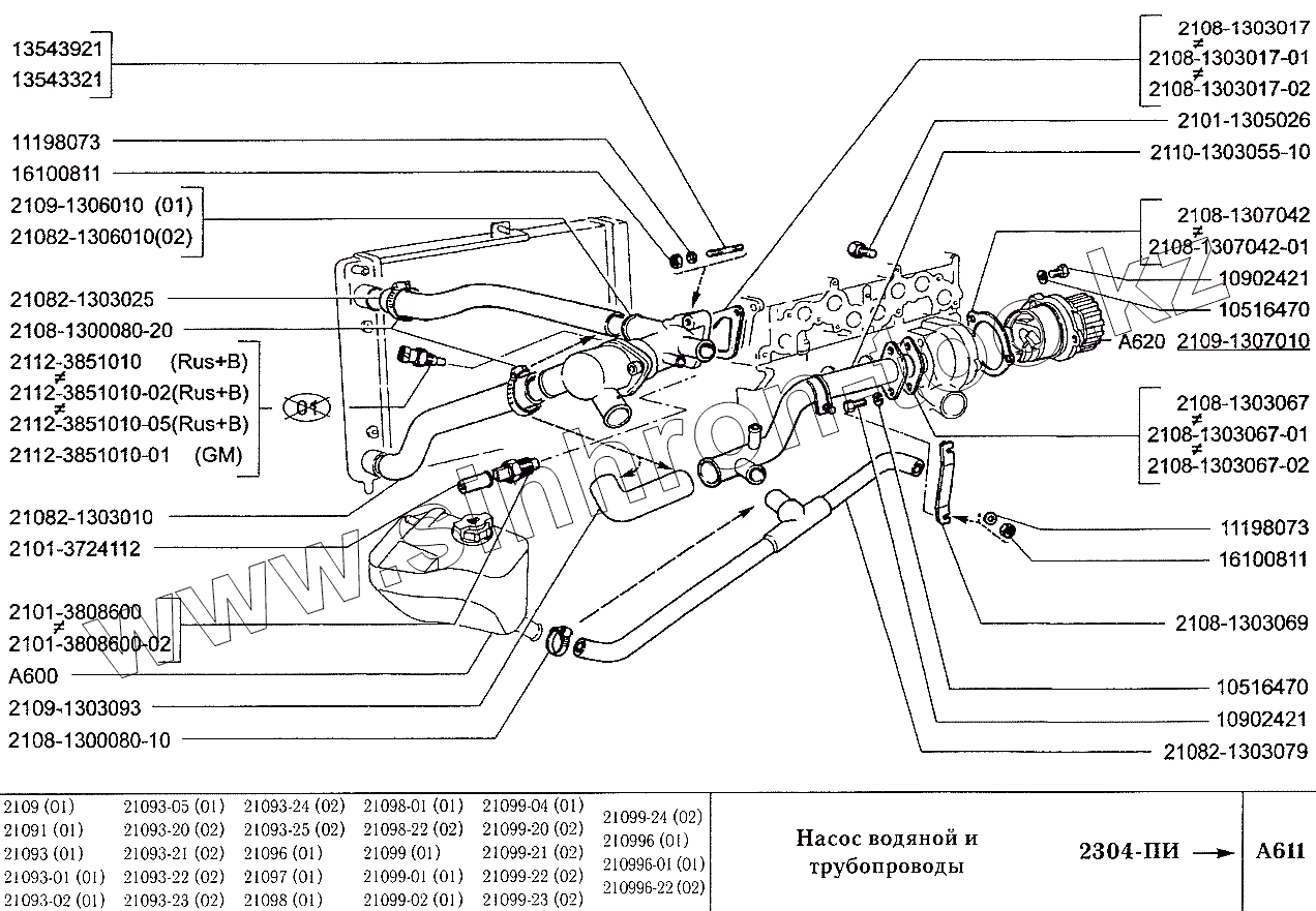 Каталог запасных частей к технике: ВАЗ-2109. Насос водяной и трубопроводы