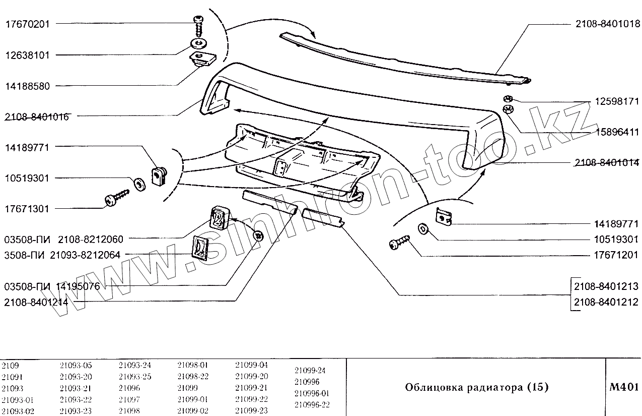 Каталог запасных частей к технике: ВАЗ-2109. Облицовка радиатора (15)