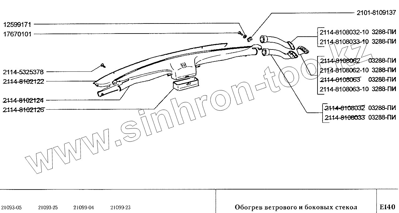 Каталог запасных частей к технике: ВАЗ-2109. Обогрев ветрового и боковых стекол