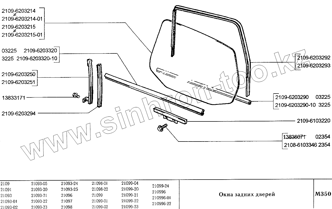 Каталог запасных частей к технике: ВАЗ-2109. Окна задних дверей