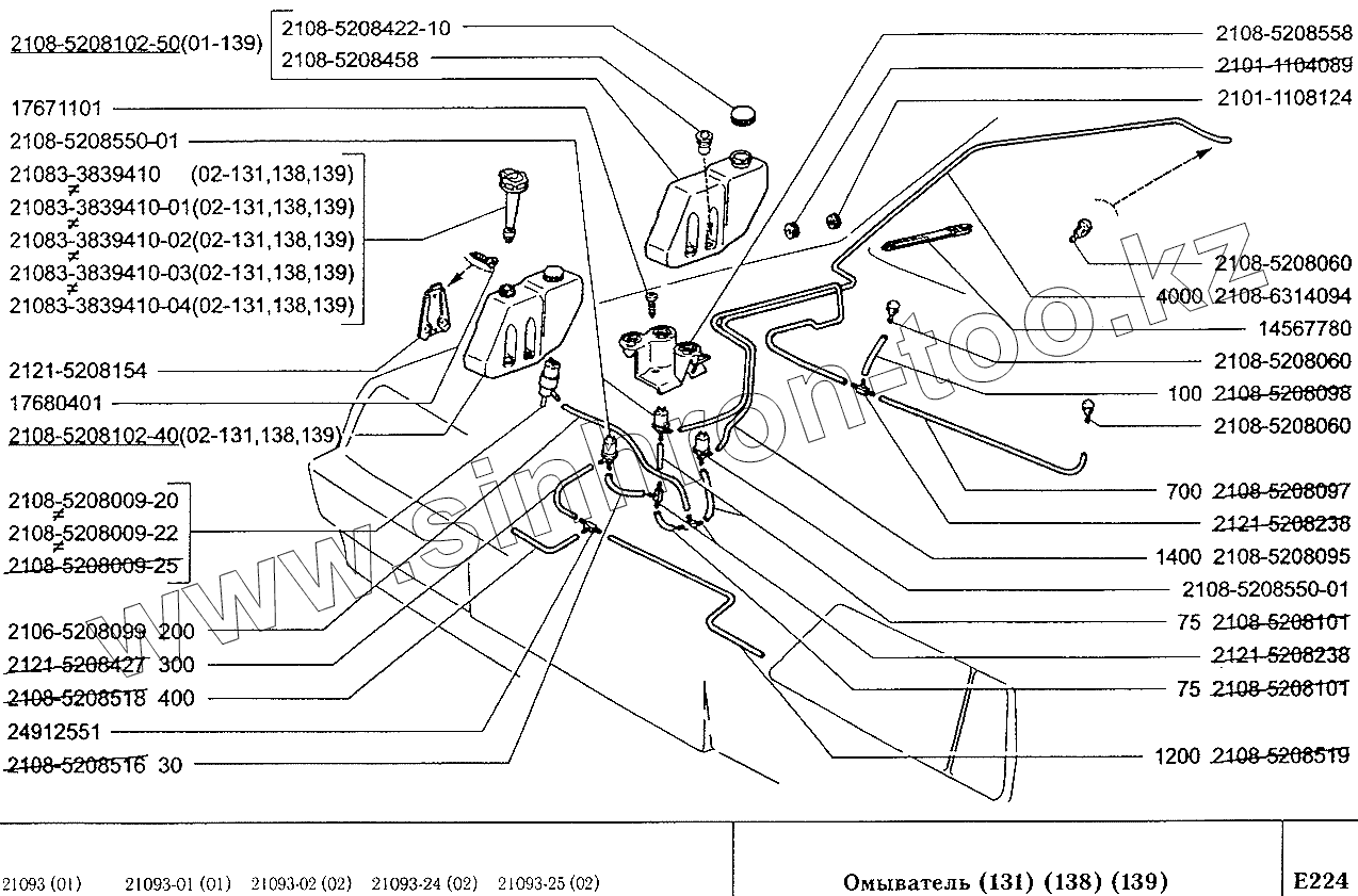 Каталог запасных частей к технике: ВАЗ-2109. Омыватель (131, 138, 139)