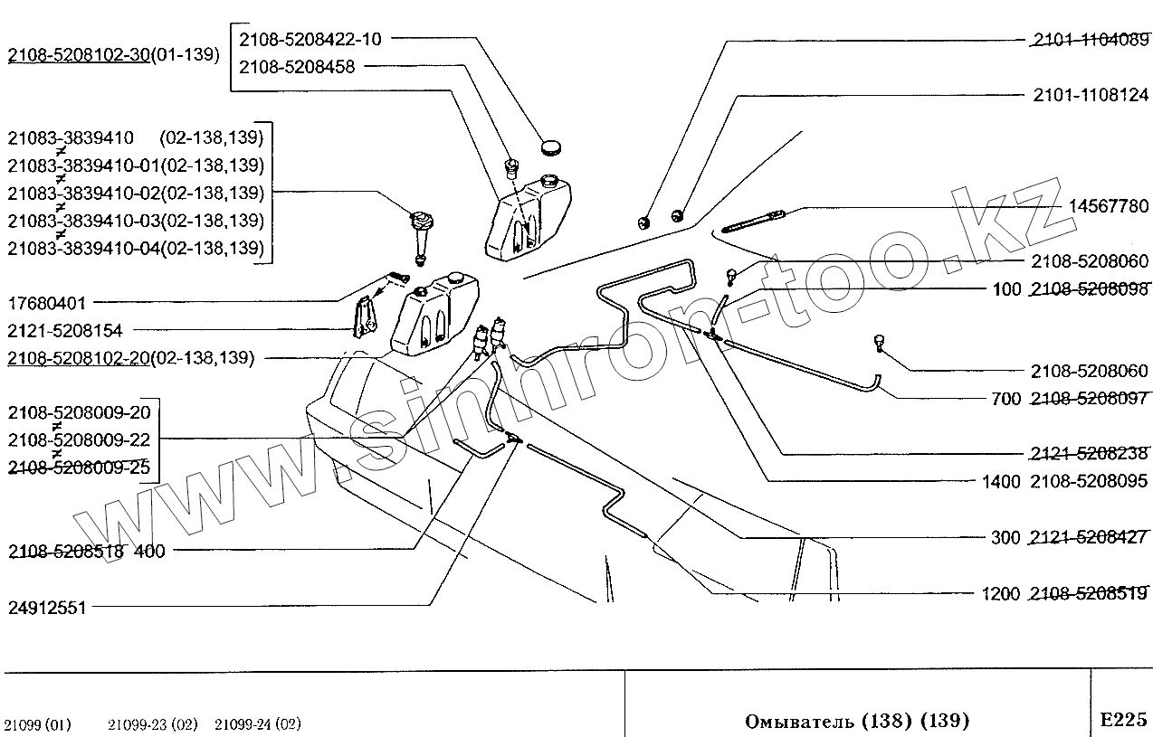 Каталог запасных частей к технике: ВАЗ-2109. Омыватель (138, 139)