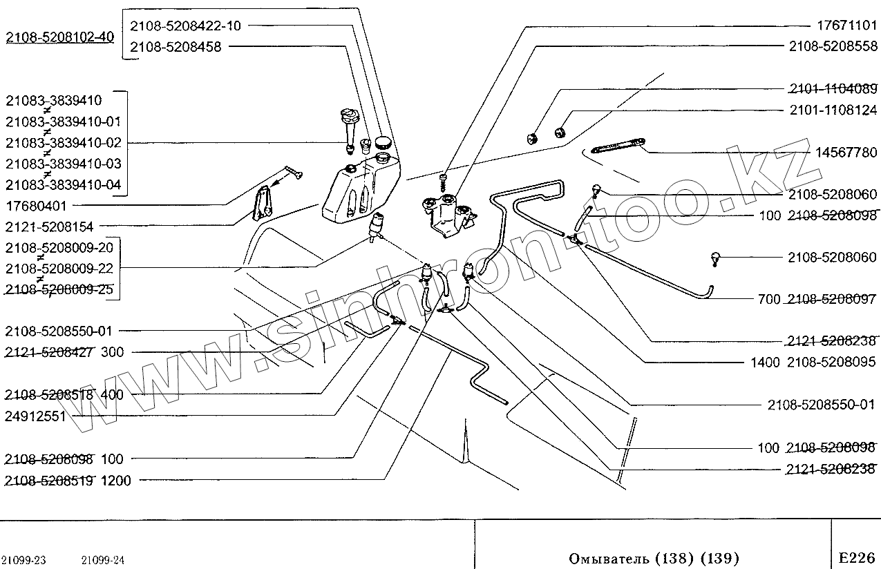 Каталог запасных частей к технике: ВАЗ-2109. Омыватель (138, 139)