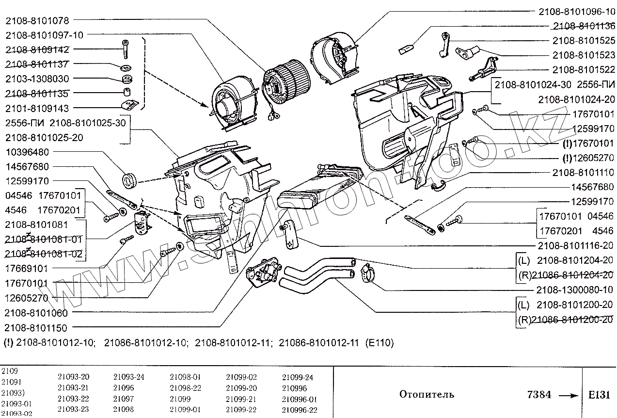 Каталог запасных частей к технике: ВАЗ-2109. Отопитель
