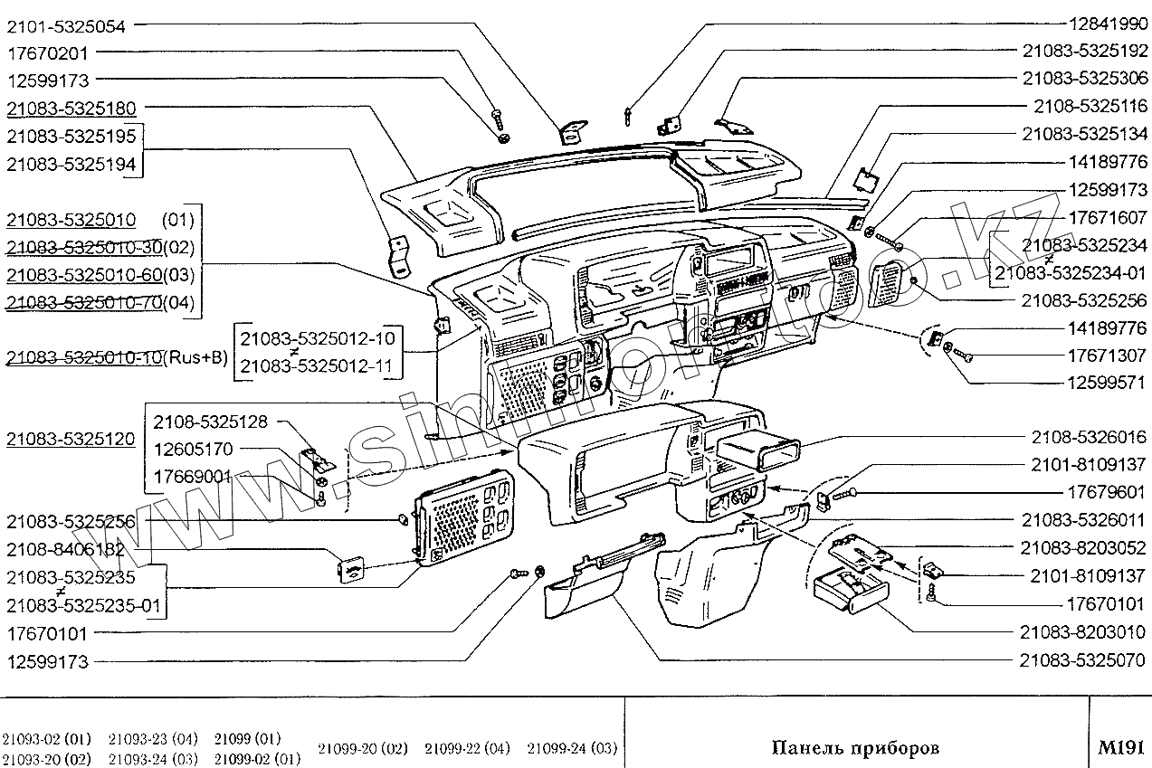 Каталог запасных частей к технике: ВАЗ-2109. Панель приборов