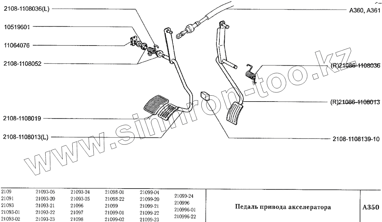 Каталог запасных частей к технике: ВАЗ-2109. Педаль привода акселератора
