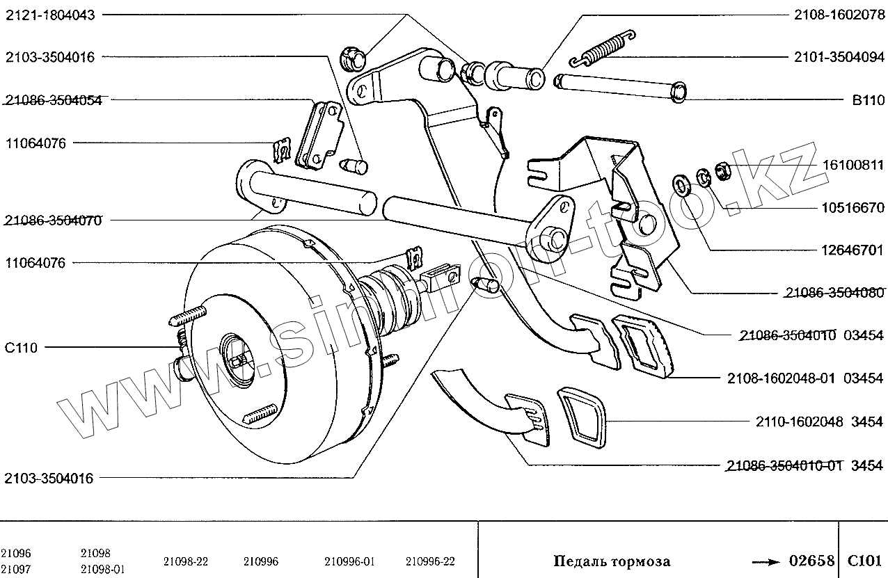 Каталог запасных частей к технике: ВАЗ-2109. Педаль тормоза