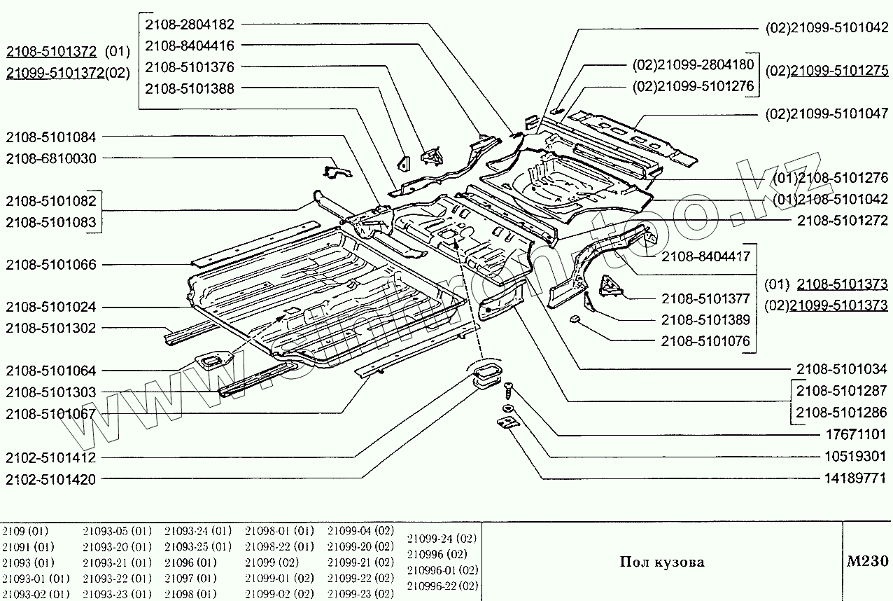 Каталог запасных частей к технике: ВАЗ-2109. Пол кузова