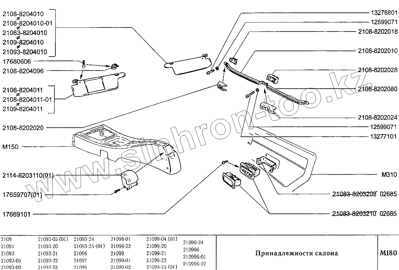 Каталог запасных частей к технике: ВАЗ-2109. Принадлежности салона