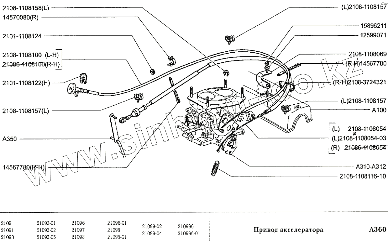 Каталог запасных частей к технике: ВАЗ-2109. Привод акселератора