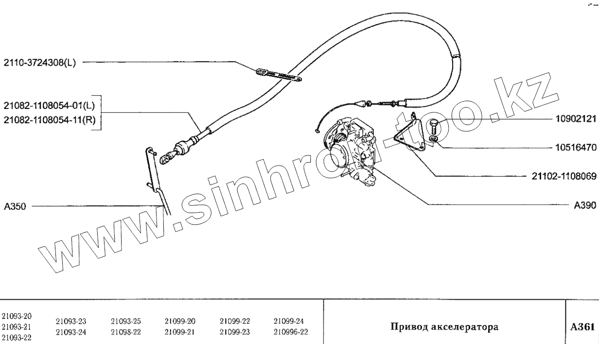 Каталог запасных частей к технике: ВАЗ-2109. Привод акселератора
