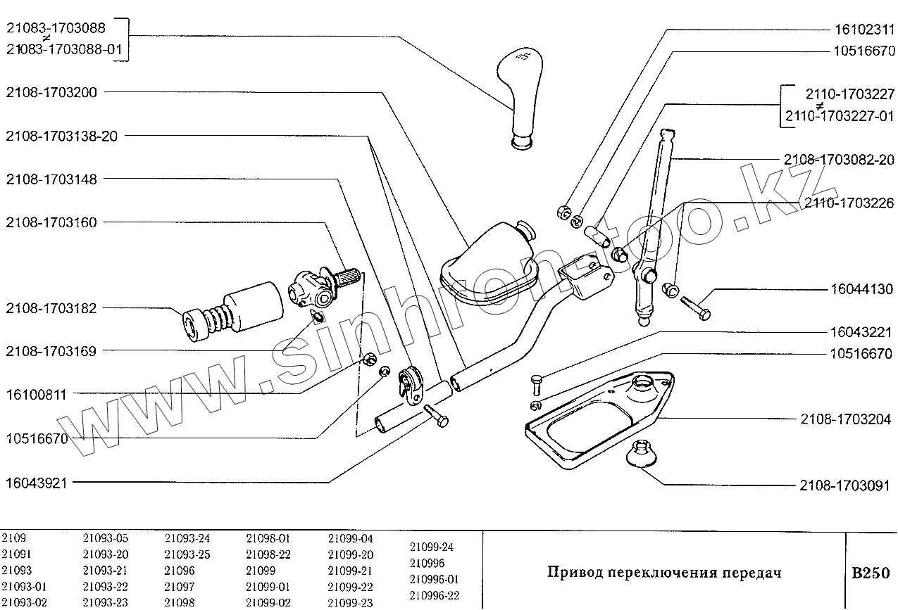 Каталог запасных частей к технике: ВАЗ-2109. Привод переключения передач