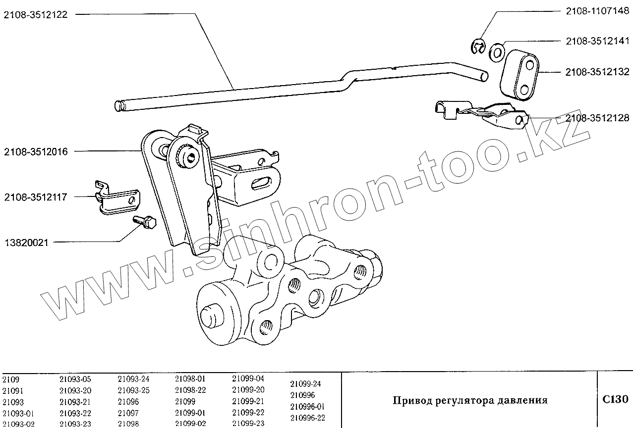 Каталог запасных частей к технике: ВАЗ-2109. Привод регулятора давления
