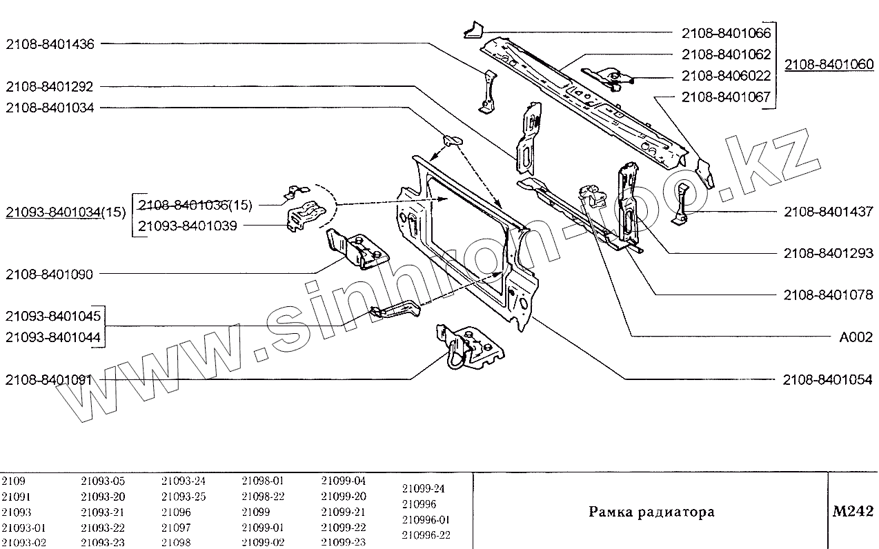 Каталог запасных частей к технике: ВАЗ-2109. Рамка радиатора